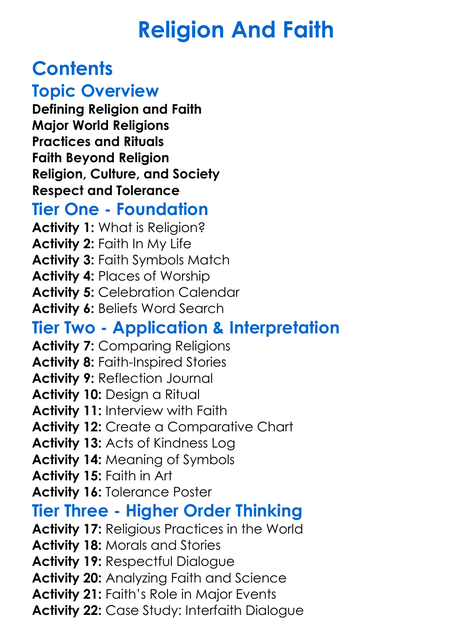 Religion And Faith Worksheet Activity Booklet