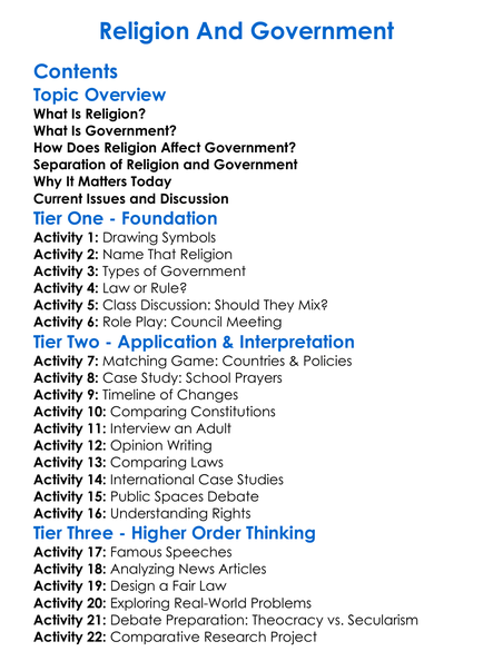 Religion And Government Worksheet Activity Booklet
