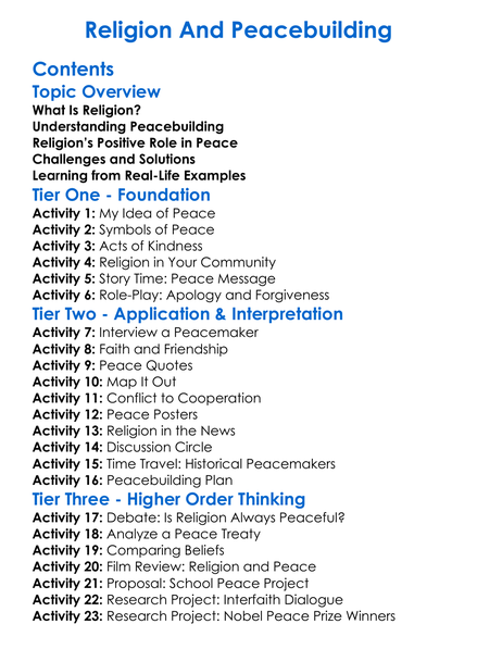 Religion And Peacebuilding Worksheet Activity Booklet