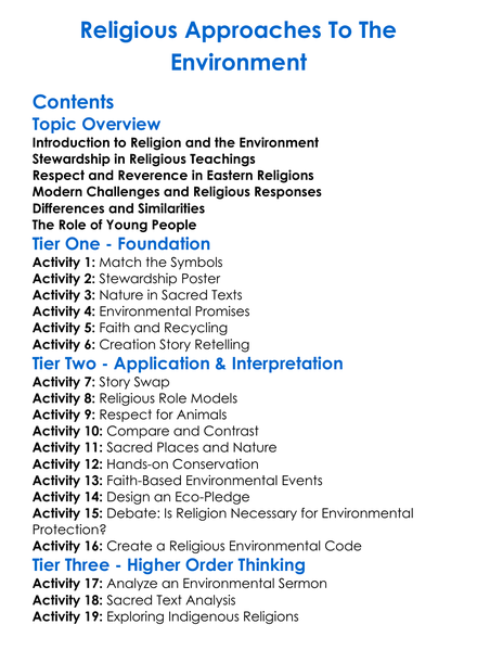 Religious Approaches To The Environment Worksheet Activity Booklet