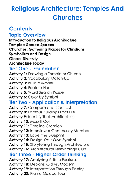 Religious Architecture Temples And Churches Worksheet Activity Booklet