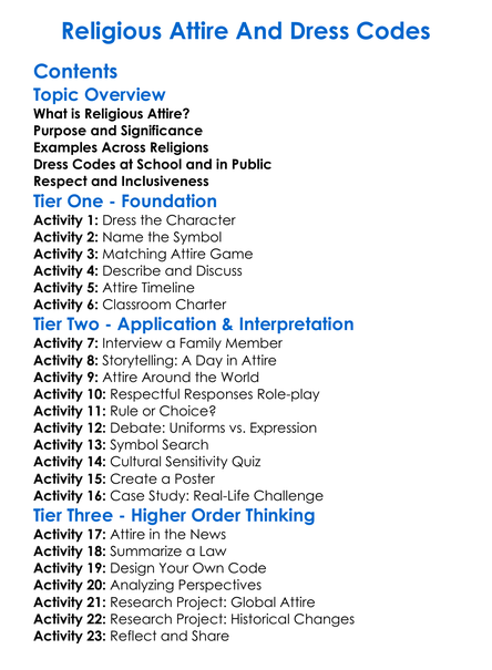 Religious Attire And Dress Codes Worksheet Activity Booklet