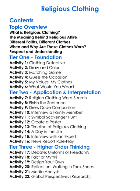 Religious Clothing Worksheet Activity Booklet