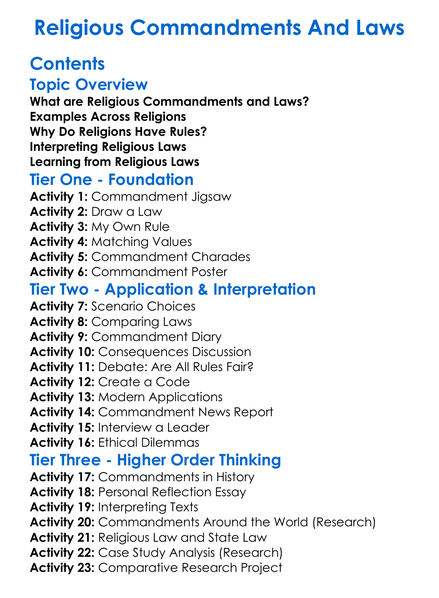 Religious Commandments And Laws Worksheet Activity Booklet