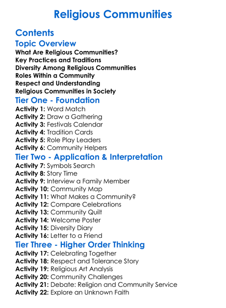 Religious Communities Worksheet Activity Booklet