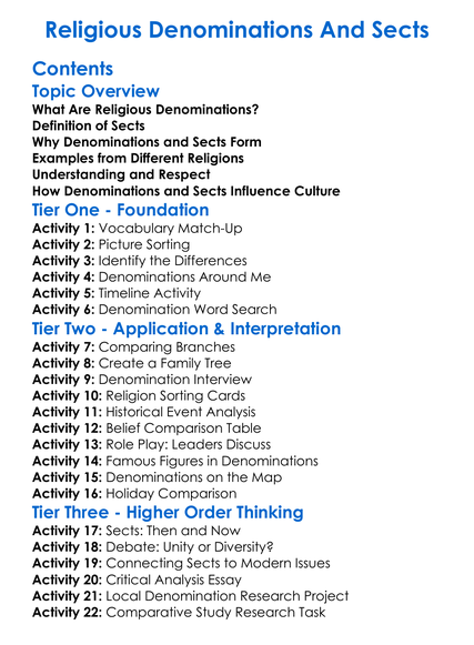 Religious Denominations And Sects Worksheet Activity Booklet