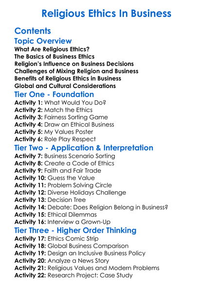 Religious Ethics In Business Worksheet Activity Booklet