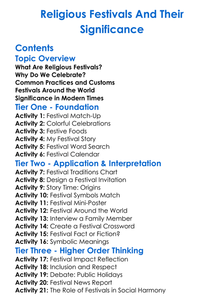 Religious Festivals And Their Significance Worksheet Activity Booklet
