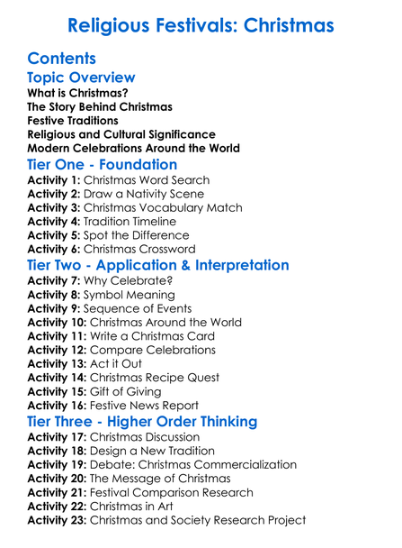 Religious Festivals Christmas Worksheet Activity Booklet