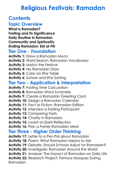 Religious Festivals Ramadan Worksheet Activity Booklet