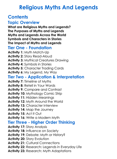 Religious Myths And Legends Worksheet Activity Booklet