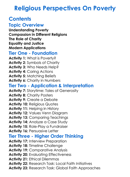 Religious Perspectives On Poverty Worksheet Activity Booklet