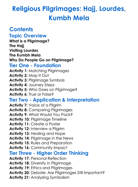 Religious Pilgrimages Hajj Lourdes Kumbh Mela Worksheet Activity Booklet