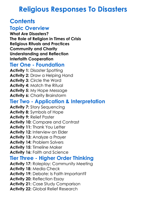 Religious Responses To Disasters Worksheet Activity Booklet