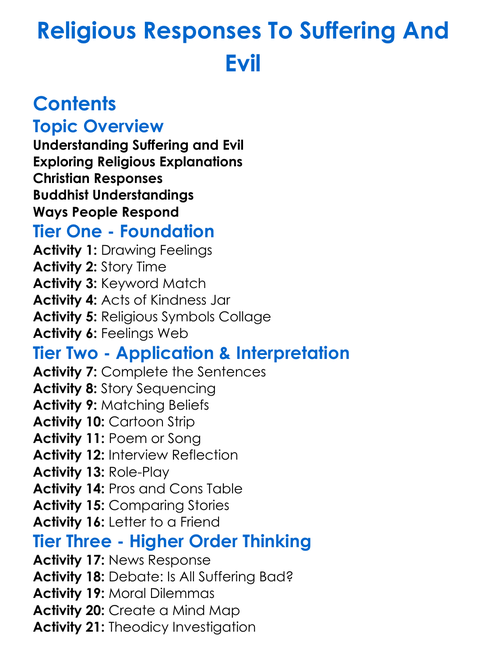 Religious Responses To Suffering And Evil Worksheet Activity Booklet