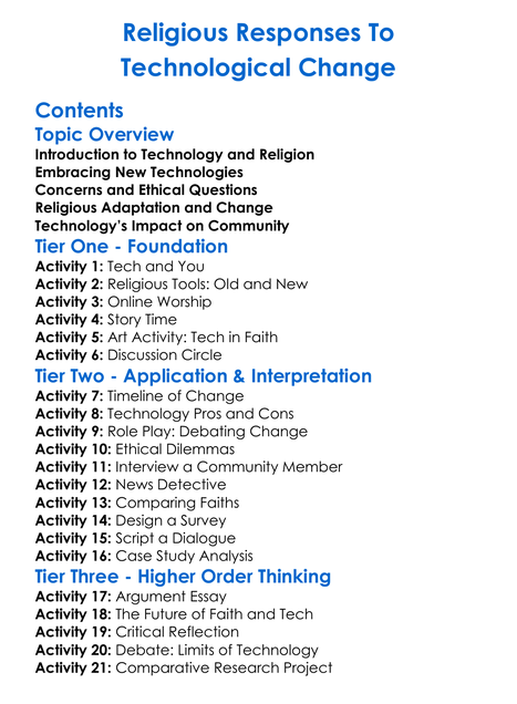 Religious Responses To Technological Change Worksheet Activity Booklet