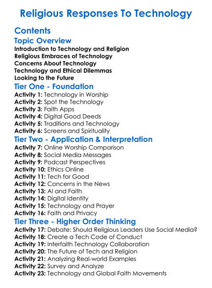 Religious Responses To Technology Worksheet Activity Booklet