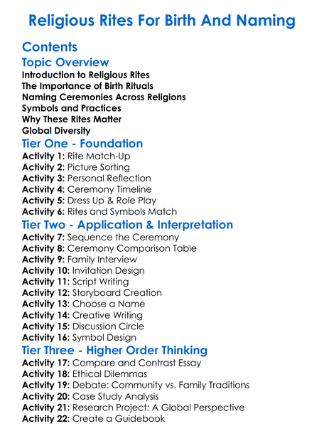Religious Rites For Birth And Naming Worksheet Activity Booklet