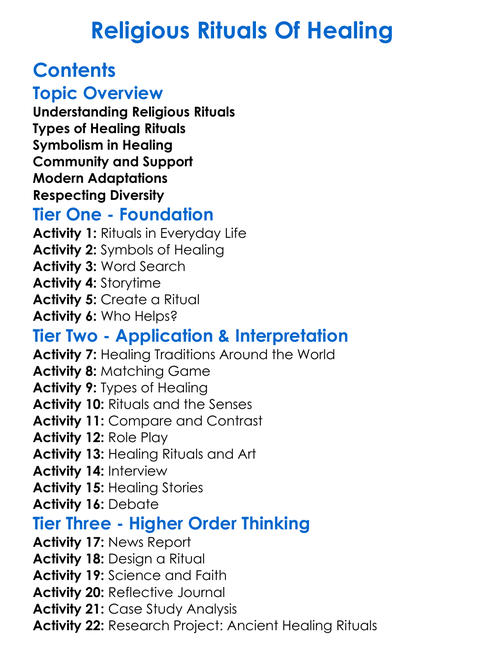 Religious Rituals Of Healing Worksheet Activity Booklet