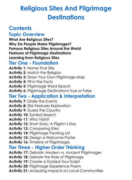 Religious Sites And Pilgrimage Destinations Worksheet Activity Booklet