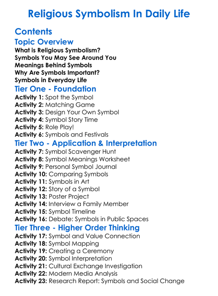 Religious Symbolism In Daily Life Worksheet Activity Booklet