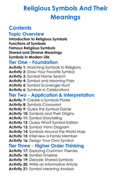Religious Symbols And Their Meanings Worksheet Activity Booklet