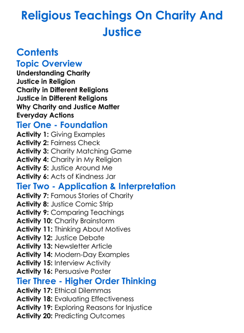Religious Teachings On Charity And Justice Worksheet Activity Booklet