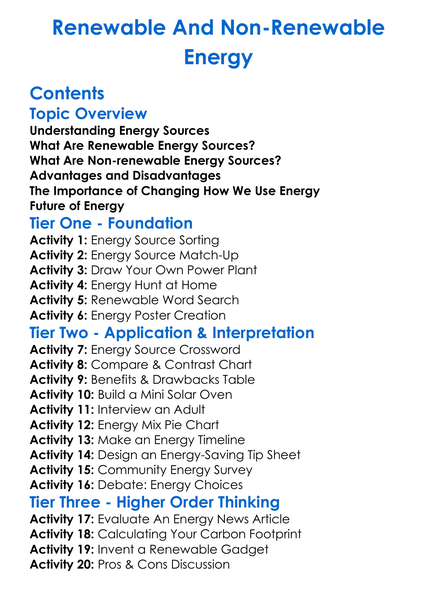 Renewable And Non-Renewable Energy Worksheet Activity Booklet