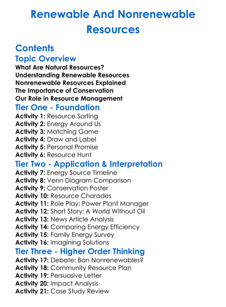 Renewable And Nonrenewable Resources Worksheet Activity Booklet