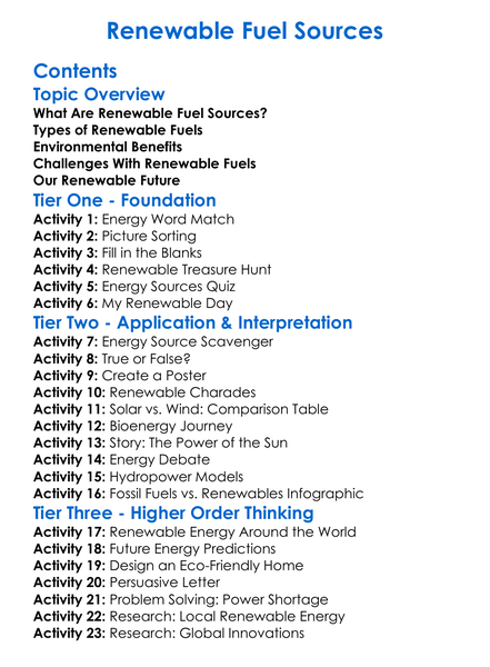 Renewable Fuel Sources Worksheet Activity Booklet