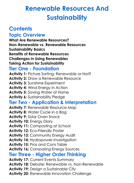Renewable Resources And Sustainability Worksheet Activity Booklet