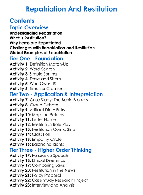 Repatriation And Restitution Worksheet Activity Booklet