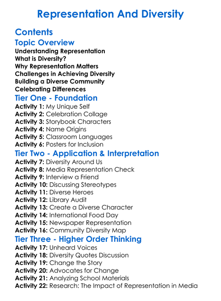 Representation And Diversity Worksheet Activity Booklet