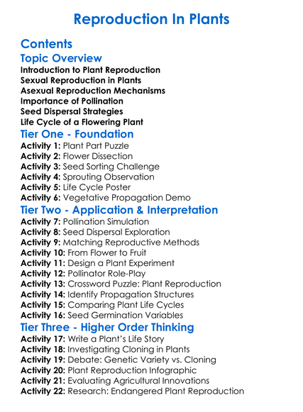 Reproduction In Plants Worksheet Activity Booklet