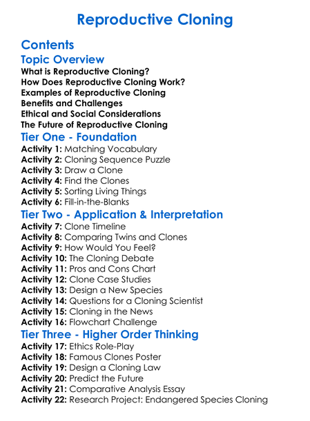 Reproductive Cloning Worksheet Activity Booklet