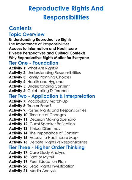 Reproductive Rights And Responsibilities Worksheet Activity Booklet