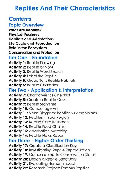 Reptiles And Their Characteristics Worksheet Activity Booklet