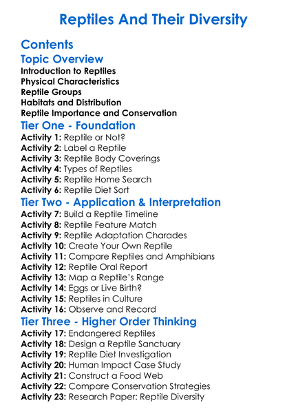 Reptiles And Their Diversity Worksheet Activity Booklet