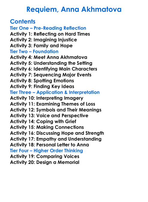 Requiem Anna Akhmatova Worksheet Activity Booklet