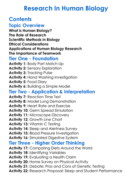 Research In Human Biology Worksheet Activity Booklet