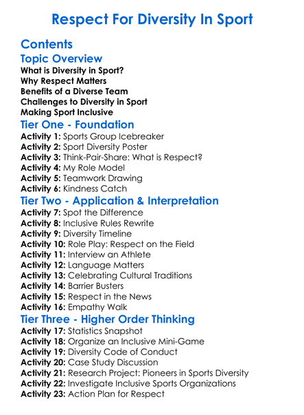 Respect For Diversity In Sport Worksheet Activity Booklet
