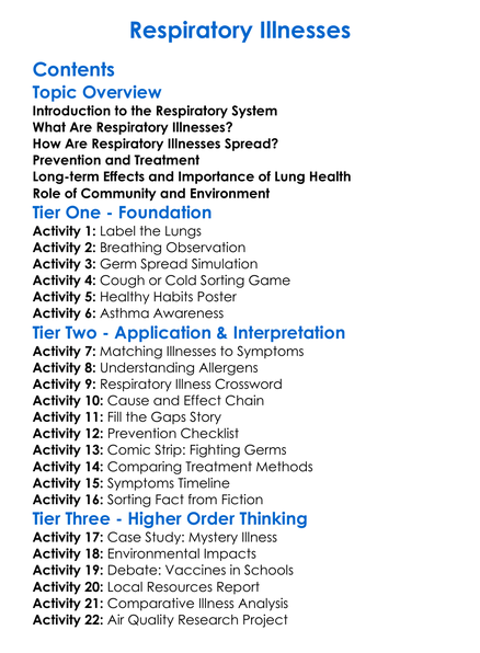 Respiratory Illnesses Worksheet Activity Booklet