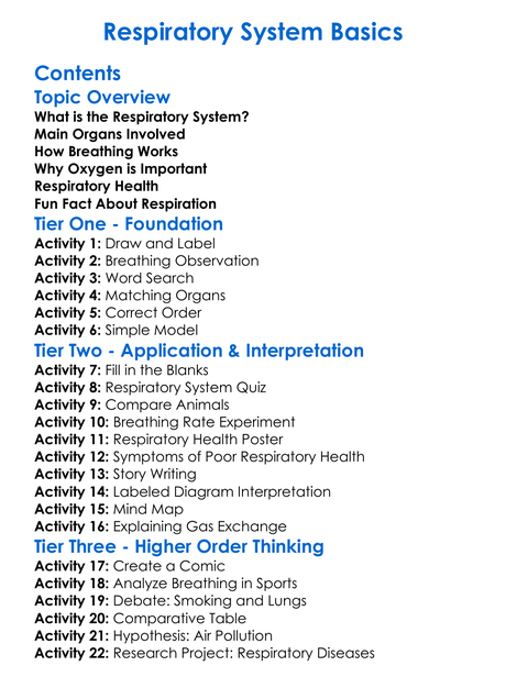 Respiratory System Basics Worksheet Activity Booklet