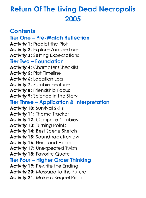Return Of The Living Dead Necropolis 2005 Worksheet Activity Booklet