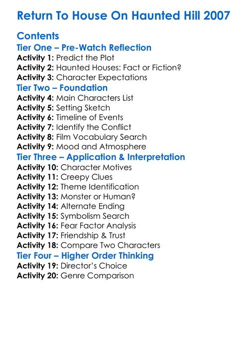 Return To House On Haunted Hill 2007 Worksheet Activity Booklet