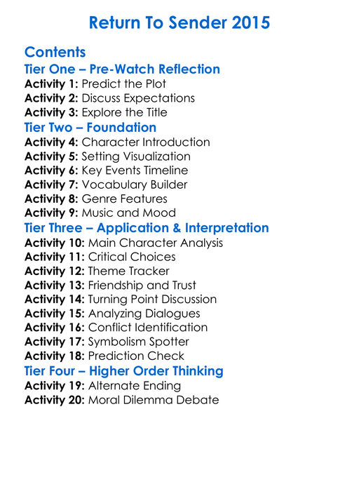 Return To Sender 2015 Worksheet Activity Booklet