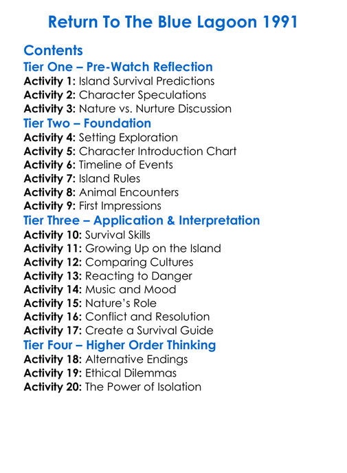 Return To The Blue Lagoon 1991 Worksheet Activity Booklet