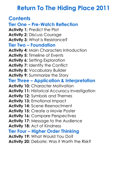 Return To The Hiding Place 2011 Worksheet Activity Booklet