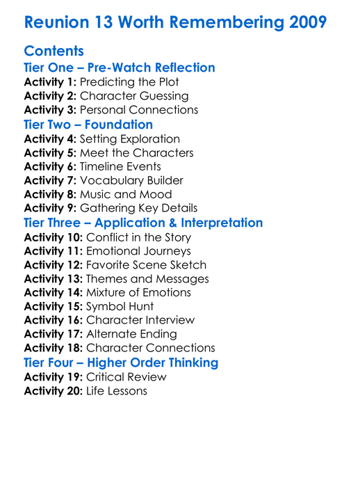 Reunion 13 Worth Remembering 2009 Worksheet Activity Booklet