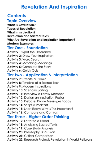Revelation And Inspiration Worksheet Activity Booklet